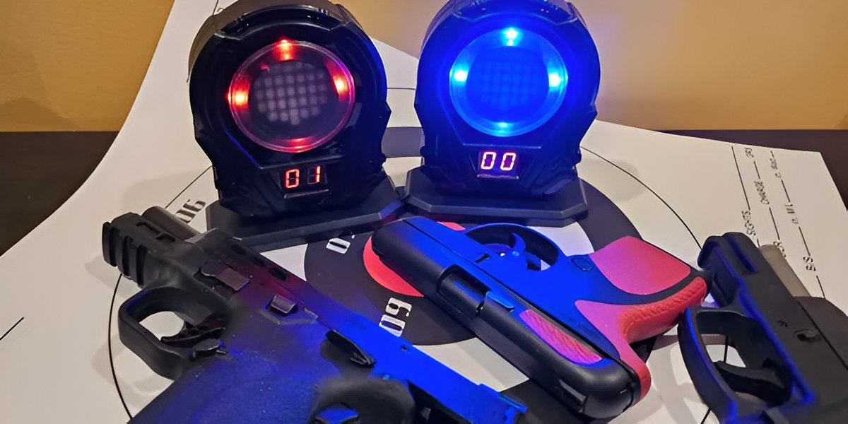 Laser targets that changes color with every bullseye you hit and also sound effect with every bullseye. You can practice anytime all you need to do is load the BullsEye Dry Fire Laser Cartridge. Turn on the Laser Target and practice.